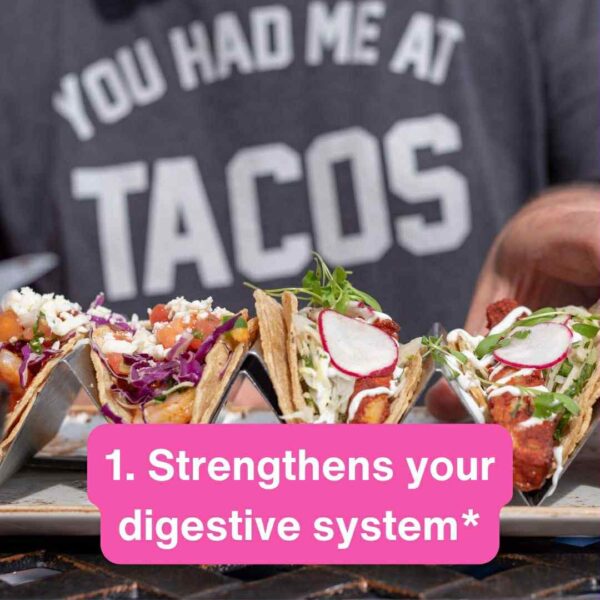 Te koristne bakterije podpirajo delovanje prebave s spodbujanjem rasti zdrave črevesne flore in zatiranjem “slabih” bakterij. Poleg tega ostane izdelek aktiven v črevesju 24 ur in zagotavlja neprekinjeno podporo s samo eno kapsulo na dan.